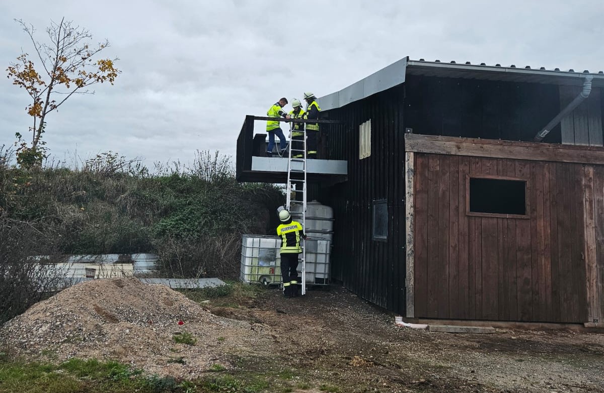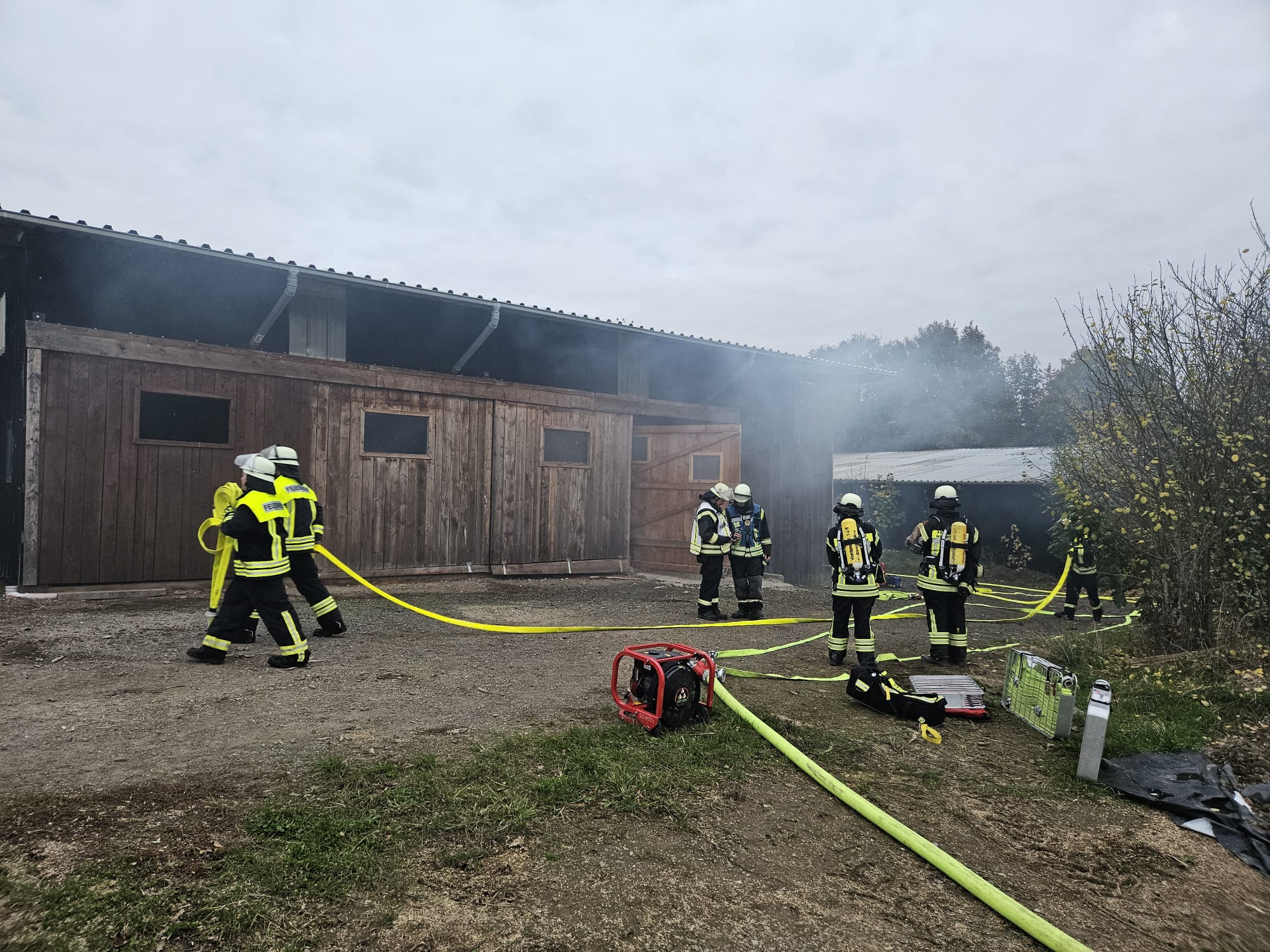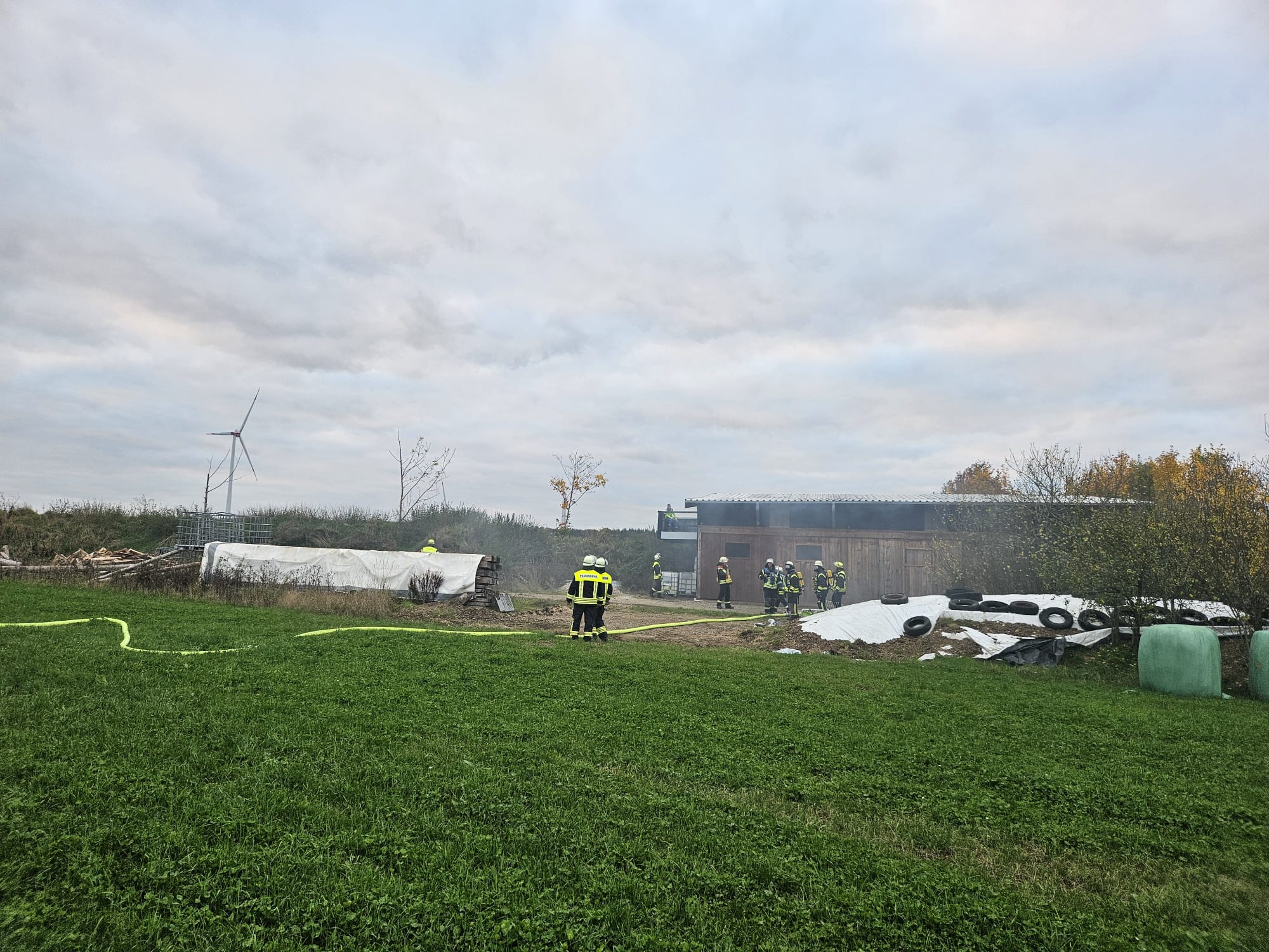 In einem landwirtschaftlichen Gebäude außerhalb des Ortes wird ein Brand festgestellt.