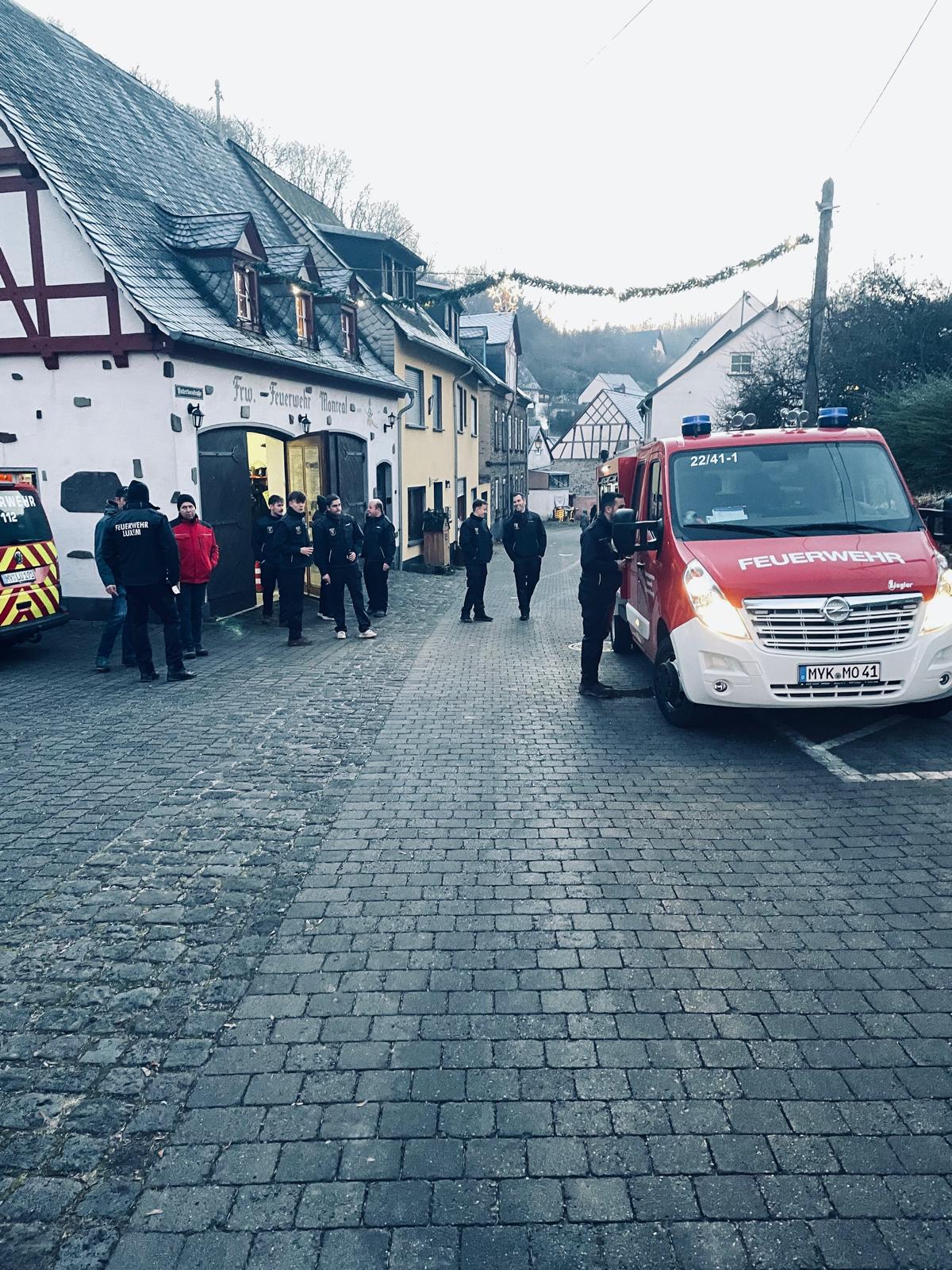 Wie jedes Jahr trafen sich zum Jahresabschluss die Kameraden der Freiwilligen Feuerwehr Luxem am 27. Dezember zur traditionellen Winterwanderung. Dieses Mal ging es mit kurzen Stärkungspausen das Weilerbachtal hinab und ein kurzes Stück die Elz hinauf in das mit ca. 200 Krippen geschmückte Monreal, wo einige Kameraden der dortigen Feuerwehr schon am Feuerwehrhaus warteten. Der Monrealer Wehrführer Markus Haferkamp begrüßte kameradschaftlich die Gäste, stellte die örtliche Ausstattung sowie das Löschfahrzeug vor und führte ausführlich erklärend durch das historische Feuerwehrhaus. Hier sind für die kommenden Jahre schon lange geplante Renovierungsmaßnahmen angesetzt. Bemerkenswert ist auch der Kellerraum für die Jugendfeuerwehr: Ein gutes Dutzend junger Kameraden und Kameradinnen bilden den motivierten Nachwuchs in Monreal. So hat sich auch in Luxem in den letzten beiden Jahren der Altersschnitt der Kameraden deutlich verjüngt. Das ist ein gutes Zeichen für die Stabilität und Einsatzbereitschaft der Wehren. Im Rückblick über die Einsätze der vergangenen Jahre zeigt sich auch immer stärker, dass die benachbarten Einsatzkräfte der Freiwilligen Feuerwehren bezüglich der technischen Ausstattung und der Personalstärke bei größeren Einsätzen auf gute Kooperation angewiesen sind. So wurde ausdrücklich betont, dass gegenseitige Besuche und auch gemeinsame Übungen verstärkt in die Planungen aufgenommen werden. Der Luxemer Wehrführer Bert May bedankte sich ausdrücklich für die Gastfreundschaft und ließ den Abend für seine Truppe bei gutem Essen in gemütlicher Runde ausklingen.